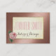 This business card is designed with a rose gold background, pink and taupe writing, and a vintage pink rose in the corner on both sides! The back features an appointment line. Fully customizable for any profession such as a hairdresser, cosmetologist, wedding planner, interior design, or anyone that loves a glamorous business card.