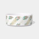 This is a heavy, durable bowl decorated with Tibbies of many colors, the perfect size for hungry/thirsty Tibs. The design is interesting and printing clear.