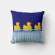 vintage rubber ducks nautical stripes cushion pillows. This cute pillow or cushion features a yellow rubber ducks against a blue and white thin striped pattern which was very popular with Victorians who loved to use this on cushions and pillows especially in the bedroom or lounge area. Decorated with these cute rubber duckies these cushions create a crisp, seaside or country nautical feel to any room with the navy blue and white candy stripes to add a vintage or retro design to any home decor. With the fashion for shabby chic and antique interior designs these pretty pillows fit right in. whie adding a funny, quirky animal touch to any room in the home such as bathroom or even patio and pool room.