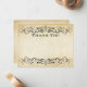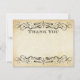 This rustic flat wedding thank you card features delicate black decorative flourishes framing classic "Thank You" lettering on an aged kraft parchment background. The front leaves room for a handwritten message. Perfect for rustic weddings, vintage bridal showers, farmhouse wedding gratitude, and any vintage-inspired celebration.