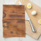 Vintage rustic brown burnt wood Monogram Kitchen Towel
