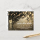 Vintage Rustic Carved Oak Tree Save The Date Cards - features a gorgeous oak tree over a vintage distressed background with string lights. You can "carve" the heart to the initials of your choice. See the entire matching design collection on this page..