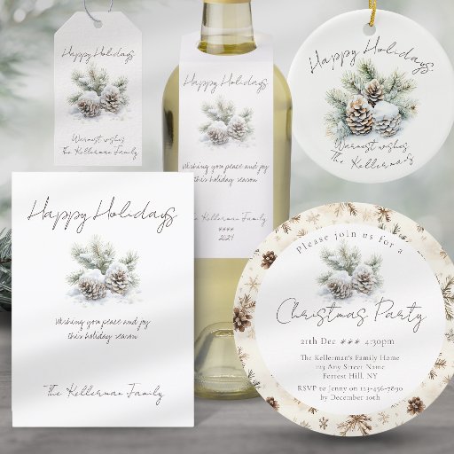 Minimalist watercolor pine cone Happy HolidaysDesigned by Anna Matilda Hellstrom