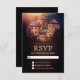 Elegant RSVP card featuring a beautiful castle against a rustic barn wood background.