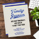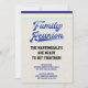 It's once again time to gather all your relatives and reconnect at a family reunion celebration. Get ready for a picnic, trip to the beach or other fun event. Retro vintage style typography in blue colors. Monogrammed with family name. Add details about your event.