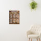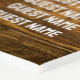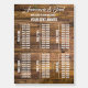 Decorative swirls and flourishes frame this elegant vintage rustic inspired wedding seating chart poster design that features the bride and groom names and wedding date, custom template text for table numbers and guest names. The rustic ivory background is printed on a wood background.