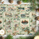 Festive and colorful collage featuring antique Christmas cards with rustic landscapes, greetings, flowers and holly with light green borders.