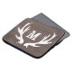 Vintage rustic hunting deer antlers laptop sleeve. Brown wood grain panel background texture with custom name monogram. Personalized gift idea for men women and kids. Hunting theme design.