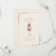 Terracotta rust color illustration of vintage oil lantern with line art botanical border. Background is off white.
