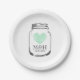 Vintage paper party plates with wedding monogram plus date of marriage. Customizable color and personalize name initial letters of bride and groom. Elegant typography in rustic country chic mason jar design. Cute romantic design with vintage mint green heart icon. Faded weathered love symbol. Disposable plates for classy wedding, bridal shower, engagement, i do bbq, anniversary or bachelorette party. Customizable background color. Perfect for outdoor barn wedding in summer around july, august, september.