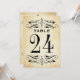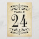 Ornate black scrollwork and vintage typography on a warm parchment background bring old-world charm to this wedding table number card. The hand-drawn flourishes and classic lettering pair beautifully with rustic and vintage reception settings. The table number is easy to personalize. Each table number must be individually personalized and added to the cart one at a time.