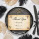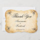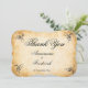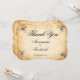 Decorative black swirls and flourishes frame this elegant rustic vintage typography wedding thank you card design. The rustic ivory background is printed with a textured aged parchment paper appearance. Personalize your text on the front cover and the text inside with a custom message.