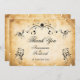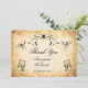 Decorative black swirls and flourishes frame this elegant rustic vintage typography wedding thank you card design. The rustic ivory background is printed with a textured aged parchment paper appearance. Personalize your text on the front cover and the text inside with a custom message.