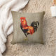 Vintage Rustic Rooster Brown Beige Burlap Throw Pillow