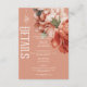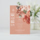 Celebrate your special day with our exquisite wedding details enclosure card, featuring a soft peach background with a delicate crackled finish reminiscent of vintage china. The text, rendered in a classic vintage font in soft white, adds a touch of timeless elegance. At the top, a stunning watercolor cluster of large peonies in shades of soft rust and blush peachy pink, accompanied by muted sage green foliage, sets a romantic and sophisticated tone. A delicate butterfly sits atop a blossom, echoing garden beauty. Invite your loved ones to join in your joy with this beautifully crafted design that perfectly blend vintage charm with modern romance. Created by Simply Farmhouse Press.