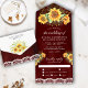 Vintage Rustic Sunflowers Bouquet Burgundy Wedding All In One Invitation