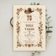 A rustic vintage cowboy 70th birthday invitation featuring an elegant botanical frame, with a western country drawing of a cowboy hat and western typography, as well as a sketched arch inner frame. Elegant and charming, it is a lovely choice for a barn birthday party, an outdoor birthday party, a barbeque party or any rustic setting with a country western, cowboy theme, for your husband, dad, grandpa, coworker etc.
