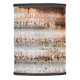 It was quick delivery, sooner than expected. This lampshade is exactly as described and the perfect size for my lamp. I replaced the old bell shape lampshade with this barrel shape and it allows me to place my lamp closer to the wall. I love the soft colors of this lamp shade and the modern-southwest design. In the evening, the light is a cream color. I am very happy with this lampshade and highly recommend this product. (Pardon the quality of my photos for this review.)