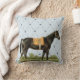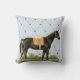 Handsome black horse with saddle in full color vintage illustration on light blue patterned background