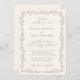 Elegant floral line art wedding invitation with a sage green roses chinoiserie ornamental frame design and elegant, vintage inspired handwritten font.