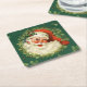 Vintage Santa and Pine Wreath Square Paper Coaster