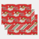 The wrapping paper boasts a vibrant red background adorned with whimsical dots of snow, creating a festive and dynamic visual appeal. The red hue sets a bold and cheerful tone, capturing the essence of the holiday season.