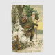It's Christmas! For a very old fashioned holiday, this vintage image is from a Victorian postcard, showing Santa claus with his brand new Christmas tree.