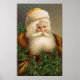 A beautiful vintage poster featuring Santa Claus with evergreens.