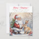 Vintage Santa Claus Christmas and Bunny Holiday Card