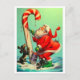 Vintage Santa Claus Painting A Candy Cane Holiday Postcard