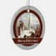 Vintage Santa Claus Reindeer Sleigh ornaments. Brown grey borders.