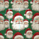 Vintage Santa Face Green Fabric