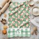 Vintage Santa Green Gingham Monogrammed Christmas Kitchen Towel