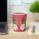 A jolly vintage Santa mug is filled with festive delight. Inside the retro beverage holder sits antique holiday decor including a dazzling Christmas tree, candy canes, and a green mischievous elf. Original illustration by Noël Snow