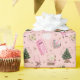 Vintage Santa Retro Pink Christmas Custom Monogram Wrapping Paper