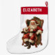 Christmas stocking personalized with a name. Designed with a vintage style image featuring classic Santa Claus sitting in an old-fashioned arm chair. Lovely traditional Christmas design.