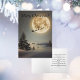 Vintage Santa Under Full Moon Flying Reindeer Card