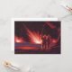 Vintage illustration futuristic Science Fiction image featuring friendly alien astronauts waving. They are on a red foreign planet or moon with exploding fire balls that look like fireworks. A classic retro 50s sci fi comic book design.
