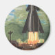 Vintage Science Fiction, Rocket Blasting Off Earth Magnet