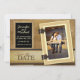 Layered papers in brown hues, with a ribbon of chalkboard and old parchment, featuring a vintage portrait folio to frame your engagement photo. Customize with your own details.