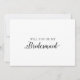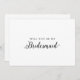 This vintage script bridesmaid proposal card is perfect for a minimalist wedding. The romantic black and white design features unique whimsical typography with simple bohemian style. Customizable in any color. Keep the design minimal and elegant, as is, or personalize it by adding your own graphics and artwork. Customize the card with the name of the bride and the bridesmaid. Personalize the back of the card with a personalized message.