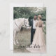 This vintage script light photo template save the date card is perfect for a minimalist wedding. The romantic black and white design features unique whimsical typography with simple bohemian style. Customizable in any color. Keep the design minimal and elegant, as is, or personalize it by adding your own graphics and artwork.