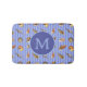 Perfect for beach combers, shell collectors, and lovers of all things summer, this casual yet elegant custom monogram bath mat features a vintage seashell and stripe pattern in nautical colors. A fun addition to your beach house, or to bring a touch of the ocean to your home any time of year!