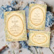 The matter paper is our sample of choice -- it's a reasonably priced, good quality, nice feeling paper stock. We were a little concerned the muted rustic blues might not reproduce all that well (usually by light colored samples), but they're just gorgeous! The white lettering is perfect in combination with the blue background, and the typography is all easy to read.