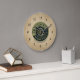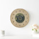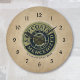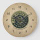 Personalize this unique decorative wall clock with a name or other text caption for a sewing room or nook. Created with an image of the top of a vintage spool of thread on an antique paper look background. Your choice of round or square.