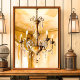 A delicate, dreamy watercolor painting of an ornate, vintage chandelier suspended from a faded, creamy ceiling, its soft, glowing light casting a warm, comforting ambiance. The chandelier's intricate details, including delicate crystals and curled metalwork, are rendered in whispery brushstrokes, with a faded, warm glow that emanates a sense of nostalgia and romance. The palette is muted, with shades of gold, amber, and honey that evoke a sense of shabby chic elegance, while the soft, blended watercolors create a sense of ethereal, whimsical wonder. The overall atmosphere is one of relaxed, vintage sophistication, inviting the viewer to step into a bygone era of refinement and luxury.