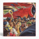 Vintage illustration travel and transportation image featuring a pilot after landing his propeller plane being greeted by a young blonde lady and a crowd of spectators including reporters, photographers, paparazzi and policemen. Love and romance is in the air!
