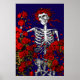 This is a digitally enhanced print of a skeleton in a rose garden derived from an antique publication. This iconic image was the basis of an album cover design for a psychedelic rock band that started in the 60's. You can customize the background color.