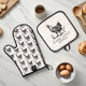 .Unleash your inner chef and add a dash of elegance to your culinary adventures with this black & white monogrammed masterpiece. Crafted with the utmost care and detailed with a delightful farm hen sketch, this set is here to be the perfect accessory to your country-style cooking escapades. Looking to elevate your kitchen aesthetics? Our Vintage Sketch Farm Hen Set is a must-have for all the farmhouse enthusiasts out there. Designed to withstand the heat and protect your hands, it's as practical as it is beautiful. Original hand-drawn Design and illustration by Moodthology Paery