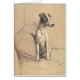 A vintage illustration by Cecil Aldin of a portrait of a Smooth Fox Terrier dog sitting upright on a chair (or couch) with an alert look on its face as if something across the room has its attention. The British artist and illustrator, Cecil Charles Windsor Aldin RBA (1870-1935), was best known for his paintings and sketches of animals, sports and rural life. This card is blank inside for your own message.